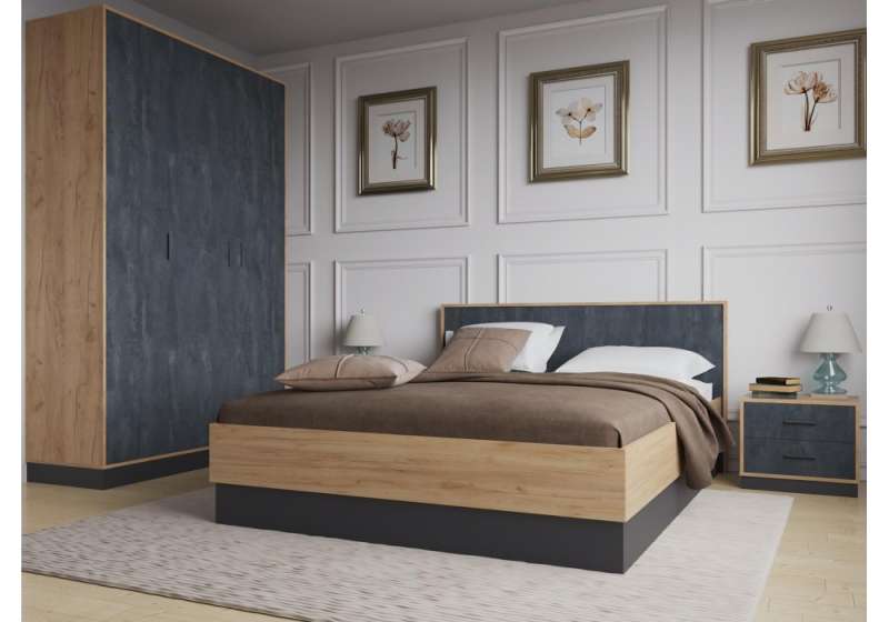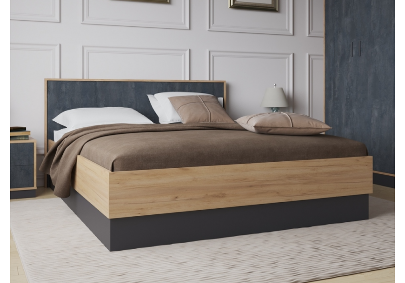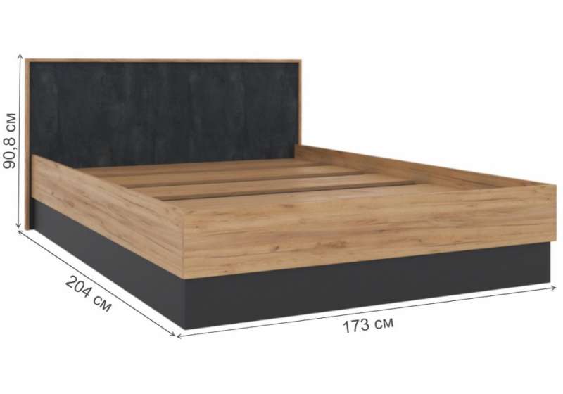 Кровать Леви 160х200 дуб крафт золотой / черный / угольный камень ().