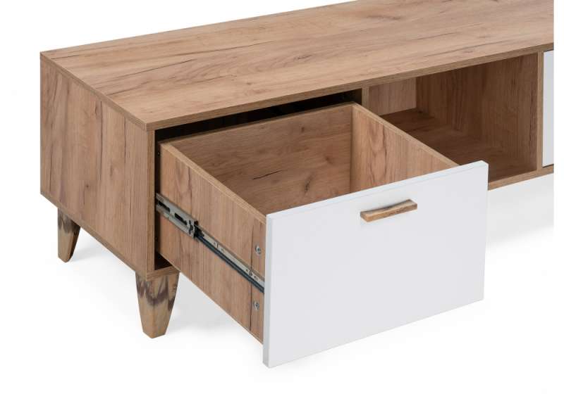 ТВ-тумбы Эго Т-3 на ножках дуб крафт золотой / белый глянец (145x40,4x41,6).