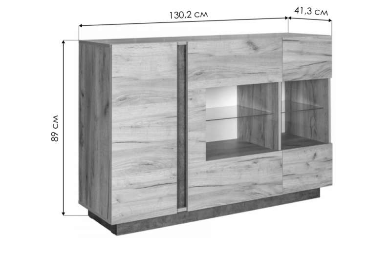 Комод Арчи 08.140 дуб золотой craft / камень темный U3705 (130,2x41,3x89).