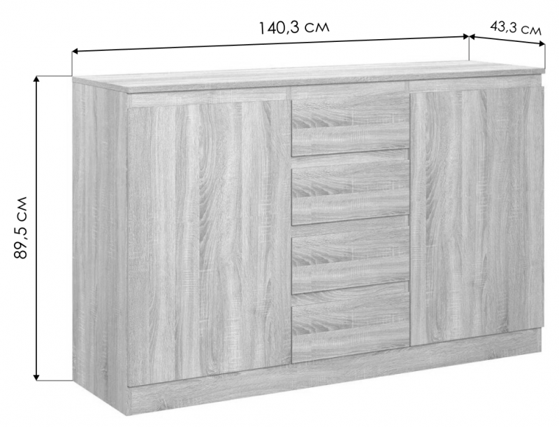 Комод Рунтроп Т-4 дуб вотан (140,3x43,3x89,5).