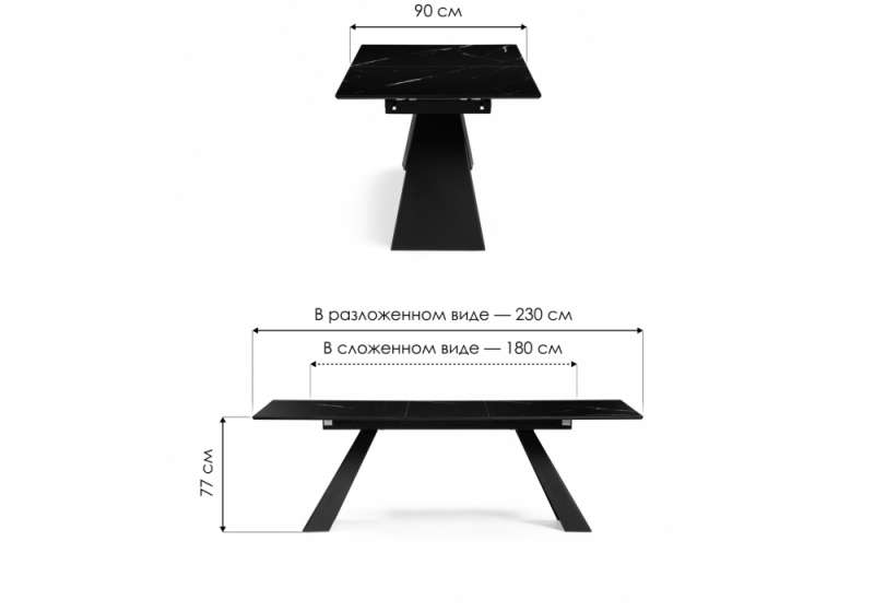 Керамический стол Стиг 180(230)х90х77 carla larkin / черный (90x77).