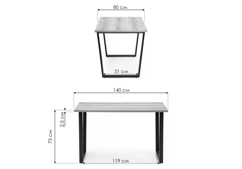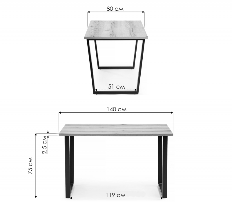 Стол деревянный Лота Лофт 140х80 белый матовый / бетон светлый (80x75).