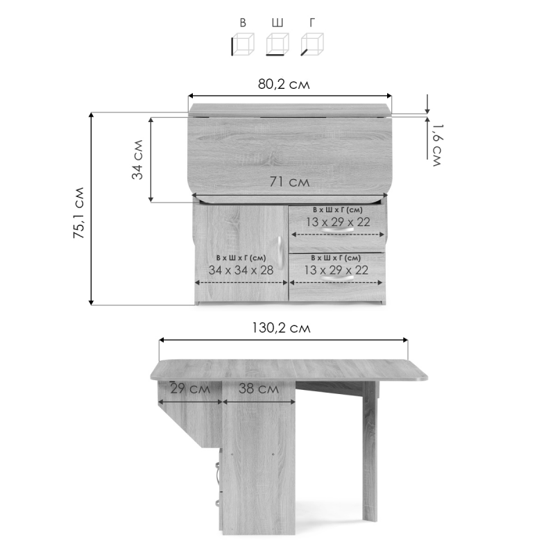 Длина стола в разложенном виде: 130,2 см.