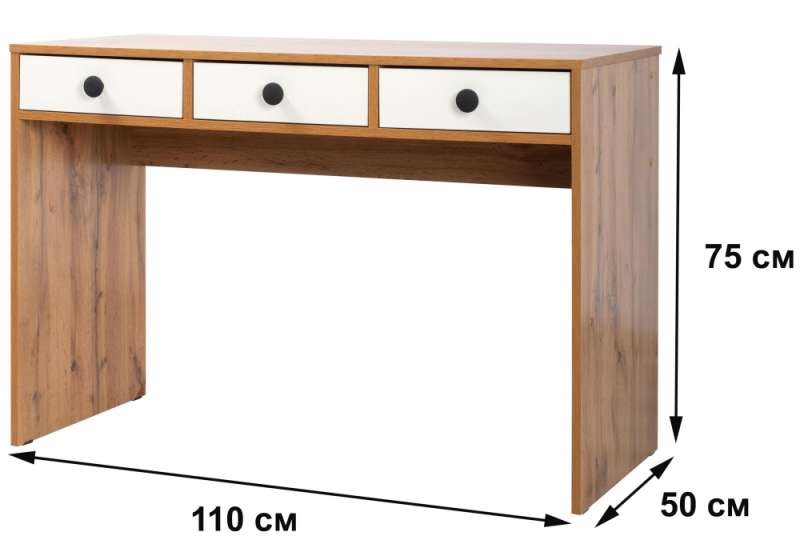 Компьютерный стол Николетта 3 ящика 110х50х75 белое тиснение / дуб вотан (50x75).