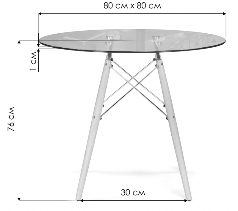 Толщина столешницы: 1 см. Расстояние между ножками: 30 см.