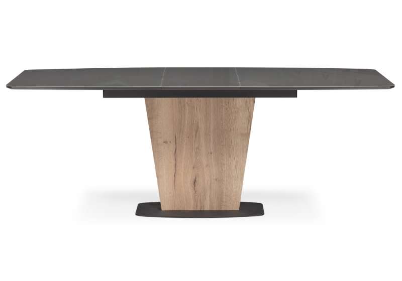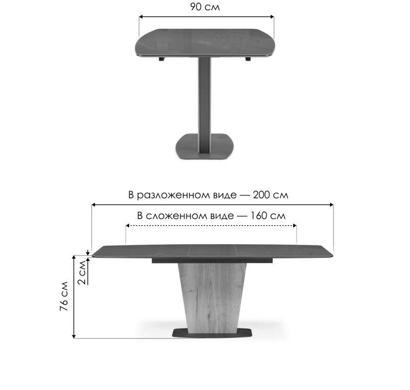 Стол стеклянный Теон 160(200)х90х76 графит / дуб галифакс (90x76)