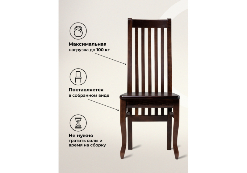 Стул деревянный Арлет венге коричневый жесткий (45x55x102).